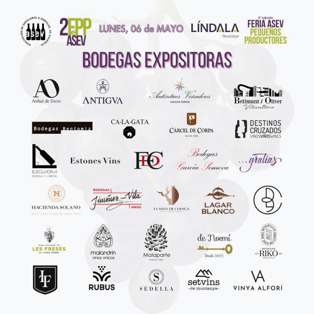 El éxito de la 2ª Edición de la Feria ASEV de Pequeños Productores en Valencia ha sido total y absoluto, con una asistencia del más alto nivel profesional de la sumillería y restauración valenciana, que se interesó activamente por la gran variedad de proyectos, orígenes y terruños que se dieron cita el pasado lunes 6 de mayo, en el Líndala Restobar de Valencia.