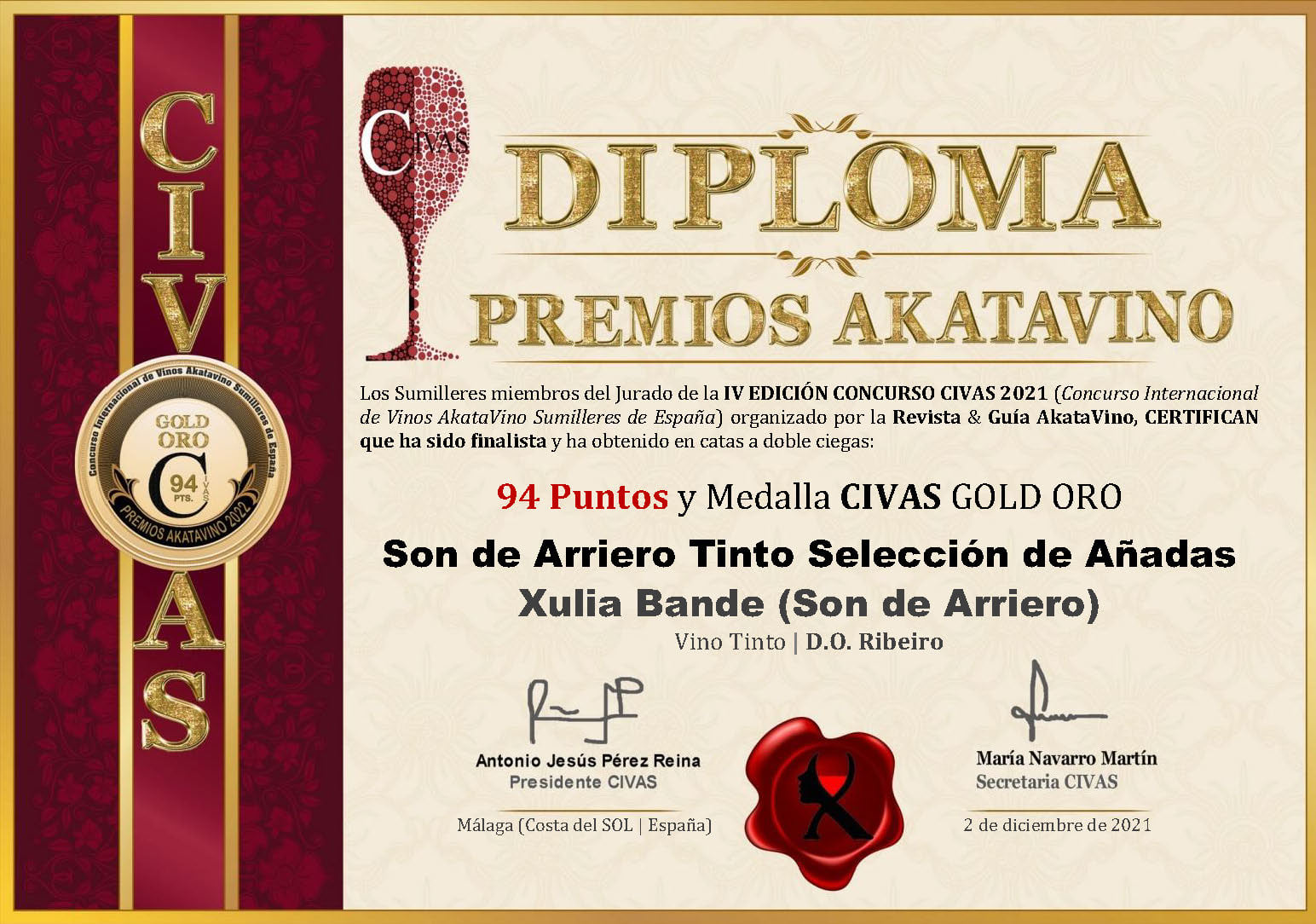 - Fecha de cata: Cata a ciegas llevada a cabo el 10/1/2022